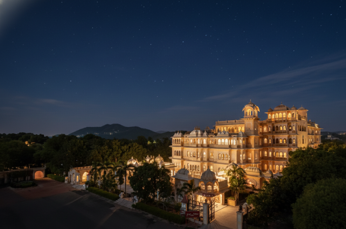Offers indoor regal halls like the Durbar Hall for intimate events and elegant dining.